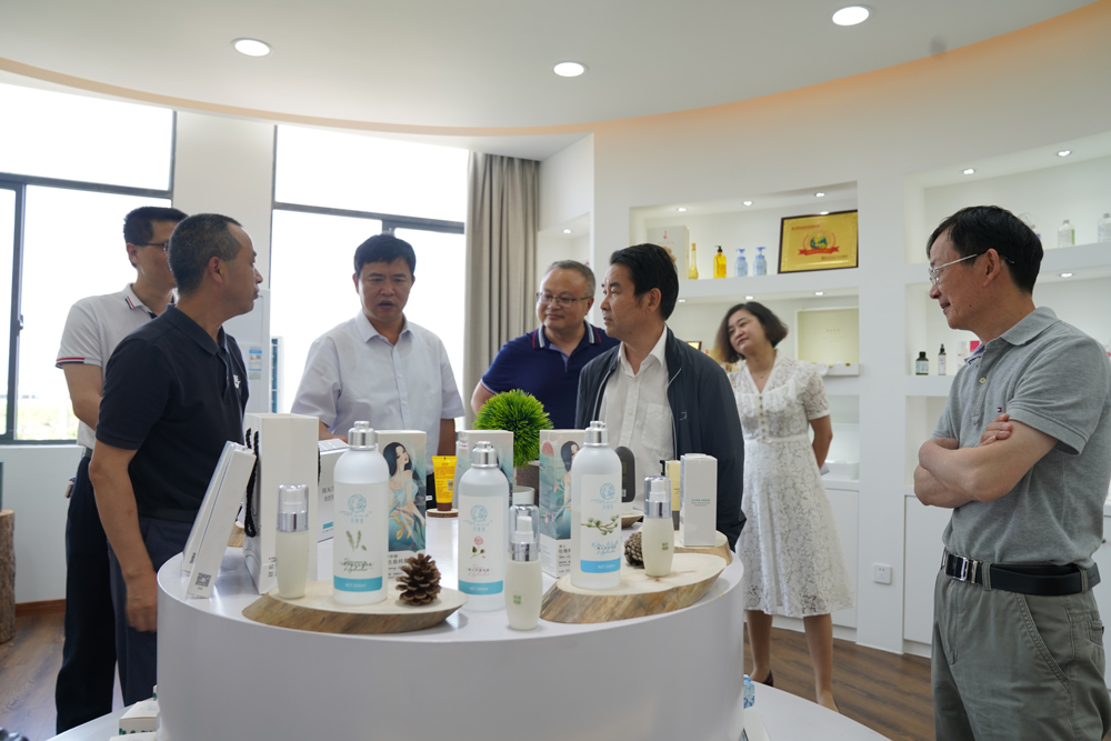 在成品展廳,張昌宏總經(jīng)理重點(diǎn)介紹了公司自主品牌“花寄語(yǔ)”新品開發(fā)情況,張正竹還親自體驗(yàn)了部分產(chǎn)品。當(dāng)了解到“花寄語(yǔ)”產(chǎn)品以植物護(hù)膚為核心理念、以本地特色植物為原料的發(fā)展思路后,張正竹非常高興,對(duì)公司的快速發(fā)展和精準(zhǔn)定位給予充分肯定和高度贊揚(yáng),并就如何進(jìn)一步開發(fā)本地特色作物在化妝品中的應(yīng)用提出了許多寶貴意見。